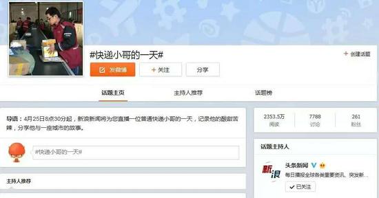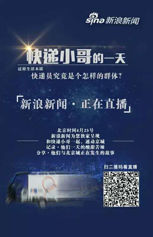 近期一个快递小哥因碰刮车辆遭扇巴掌的新闻引发广泛关注,事件过后,似乎对快递行业的关注又一切如常。新浪新闻的编辑们在反思,当舆论在谈论“快递小哥被打”时,我们到底在讨论什么?市民生活日益离不开快递员,我们有没有一种办法让他们的生活和工作模式得以被报道、被认识,让大家能更好地理解这个职业?于是,他们发起了这场直播,旨在透过对一个普通 市民的关注,去还原真实的快递员生存状态。