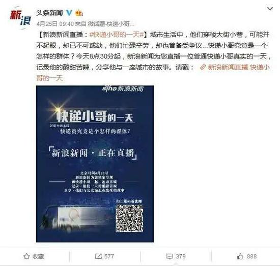 新浪新闻派出资讯运营组的两位编辑,联系某快递公司,进行了一场长达12小时的移动直播。