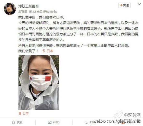 【日本华人抵制apa酒店,国内“精神日本人”坐不住了】@污妖王彤彤彤 就游行遭到日本右翼的干扰一事发布微博,“感谢日本的警察,以及一些友好的日本人”。然而这条微博却遭到一批帐号的组团攻击。点赞妹子,戳图认清“精日”↓