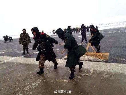 15日晚由于冰雪天气原因,23:00以后所有未登机的出港航班全部取消。16日上午,因机场东西跑道摩擦系数不能满足航班起降标准,机场临时性关闭,昆明机场大面积航班延误处置领导小组决定启动大面积航班延误预案一级响应。