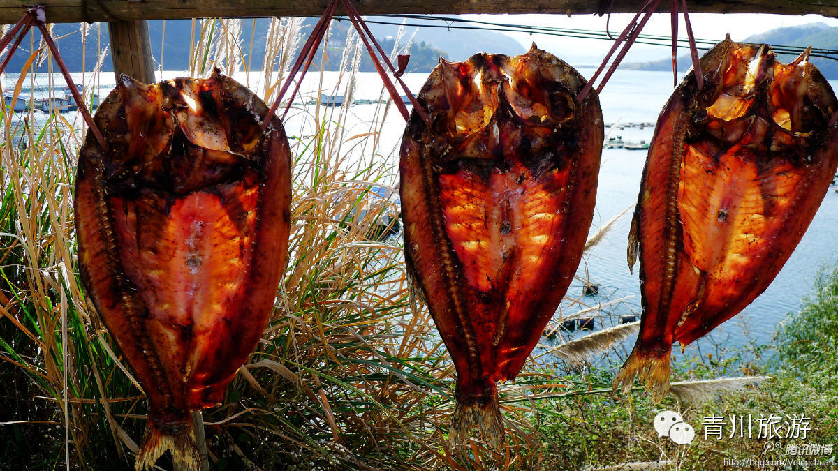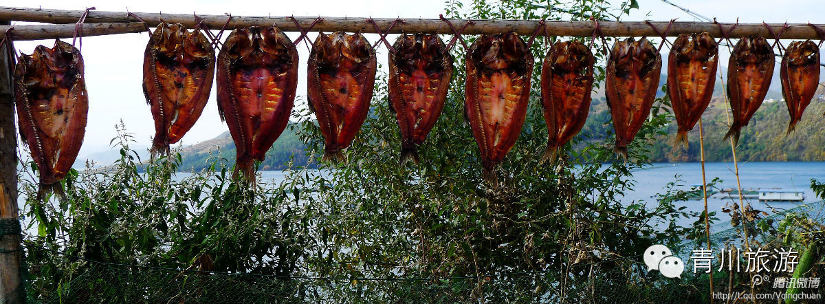 被誉为"西南第一湖"的白龙湖,水域面积广阔,水产资源丰富。生长在白龙湖的野生鱼类肥美,现在正是做鱼干的好时节,按照鱼类大小分别采用背剖、腹剖和腹边剖三种形式。背剖,一般用于鱼大肉厚的。剖割时从鱼背鳍下第二鳞片进刀,刀至鱼头骨时,微斜在头骨正中切开。除去内脏及牙墩,把脊骨的血污及腹内黑衣粘膜,用刀片轻轻刮去。若鱼身较大,应在脊背骨下及另一边的肉厚处,分别开吞刀、夹刀及片刀,使盐水易于渗透。鱼小肉薄的,可采用腹剖。即在鱼腹正中进刀,两片对称剖开。渔民们用各类调料做成的香辣鱼干挂成一排排自然风干,看着就要流口水了。