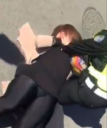 摩托女被按地上:女子无证驾驶 警方称执法过激