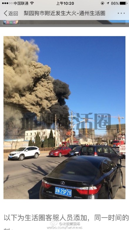 北京通州梨园狗市附近起火 现场听到爆炸声