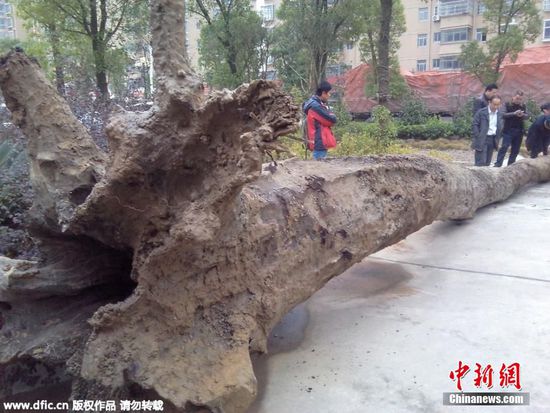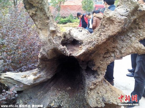 江西鄱阳湖挖出巨型乌木 长7.2米重6吨(图)