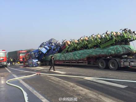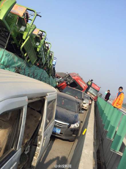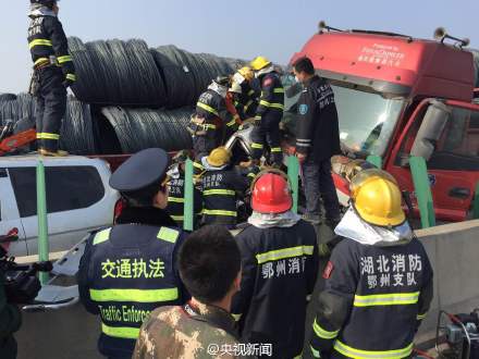 湖北武鄂高速路发生11车连环相撞 8人被困